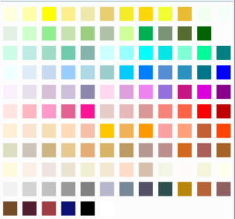 Yellow-3|&HE0FFFF|Yellow-2|&HAAFFFF|Yellow1|&H00FFFF|Daffodil|&H8CEFFD|Goldenrod|&Haae8ee|Gold-2|&H6ECEE8|ZincYellow|&H29ECF5|Gold|&H00D7FF|GreenYellow|&H30FFF1|Mustard|&H30BBE9|Honeydew|&HF0FFF0|Mint Cream|&HFAFFF5|LtGreen2|&HE4F1E3|Green-1|&HCCFFCC|Light Green|&H90ee90|Green-LT2|&HB0E2C7|Green-2|&H82CD9B|Green-Lt1|&HA7C2AF|Yellowgreen|&H99FFCC|Green 3|&H50b000|Sage|&H73947B|DarkOliveGreen|&h2f6b55|DarkGreen|&h006400|Bright Green|&H00ff00|Bluegreen-1|&He6fccb|Bluegreen-2|&He4ebbe|Bluegreen-3|&Hc7db9f|Bluegreen-4|&Hacca70|Bluegreen-5|&HACB485|Light Turqouise|&HFFFFCC|Turqouise-2|&HFFFF96|Turqouise|&Hffff00|Teal-1|&HE6E600|Aquamarine|&HD4FF7F|Spring Green|&H9afa00|Teal-2|&h808000|Azure-1|&HFFFFF0|Blue-Lt1|&hF7EBDF|Blue-2|&hf1d9c5|Pale Blue|&hffcc99|Blue-3|&hE6D8AD|Bluegray-1|&hCDCD9B|Sky Blue|&HFFCC00|Azure|&hff7f00|Blue-4|&hd58e53|HappyBlue|&HBF912B|Blue-5|&H887700|Blue|&hff0000|Lt Purple|&HFEF0FB|Purple-2|&HECE0E5|Purple-3|&HD8BFD8|Purple-4|&HDAC0CC|Purple-5|&HAD878E|Lace|&HF0D8FF|Plum|&hdda0dd|Violet|&hee82ee|MediumPurple|&hdb7093|MedVioletRed|&H8515C7|Magenta-1|&HDC00DC|Dark Magenta|&h8b008b|Pink-3|&hE1E4FF|Pink-3|&hE1E4FF|Pink-2|&hC1B6FF|Rose|&HCC99FF|Carmela|&H9462E2|DeepPink|&h9314ff|Red-1|&HC9CCE5|Red-2|&HB8B9E6|Red-3|&H9597D9|Coral Pink|&H7983F8|Red-4|&H4763FF|Red|&H0000FF|DarkRed|&H0000C0|Peach-2|&hd5efff|Linen-1|&HCFE4FA|Wheat|&hB3DEF5|Peach-1|&hb9daff|Peach-5|&ha8bff8|LtOrange-2|&H00C7FF|YellowOrange|&H55B2F0|Light Orange|&H0099FF|Coral|&HA0A0FA|Light Salmon|&h7aa0ff|WinterOrange|&H335FC2|Red-Orange|&H0045FF|Brown-2|&hC1DDDD|Brown-2|&hC1DDDD|Brown-1a|&HB9C4CC|Brown-1|&h82B4CD|Toffee|&H8FC9E6|Mocha|&H76ADE4|IncaBrown|&H65B3D9|PasteBoard|&H619BBD|RespectPinkI|&H9298B5|RosyBrown|&h8f8fbc|Chocolate|&h1e69d2|OakBrown|&H5960A8|Mustard2|&H2562A7|Cream|&HDBFAFF|Linen|&he6f0fa|Macademia Nut|&HDDE3EE|Lace2|&HD2E3EA|Beige-1|&hd1eef2|Golden Mushroom|&HD1E8F4|Tan1|&HC5DDFB|Linen-3|&hABC0D7|VanCream|&HE7F5F3|Snow|&HFAFAFF|Beige-3|&hdcf5f5|Ivory|&HF0FFFF|Gray-0|&hf2f2f2|Gray-1|&hd3d3d3|Gray-25%|&hc0c0c0|Gray-40%|&h999999|Gray-50%|&h808080|Silver|&HCDB6B6|LightSlateGray|&h998877|Slate|&H655153|Dark Slate Gray|&h4f4f2f|DarkGoldenRod|&h0b86b8|Copper|&H3764B4|ScarletBrown|&H61608E|Caramel|&H274A75|PandoraRed|&H301F4F|Brown-5|&H443D9F|Navy|&H76110D|Black|&h000000|White|&HFFFFFF