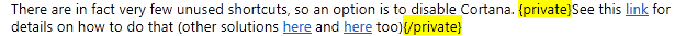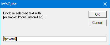 Alternately, you may manually enter the tags, for example {private} before the text block, and {/private} after the text block