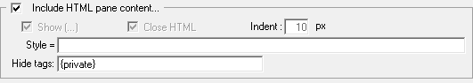When doing an HTML Export (Table with Columns and Bullet List), it is possible to specify HTML tags that should be excluded from the HTML export, i.e. {private}